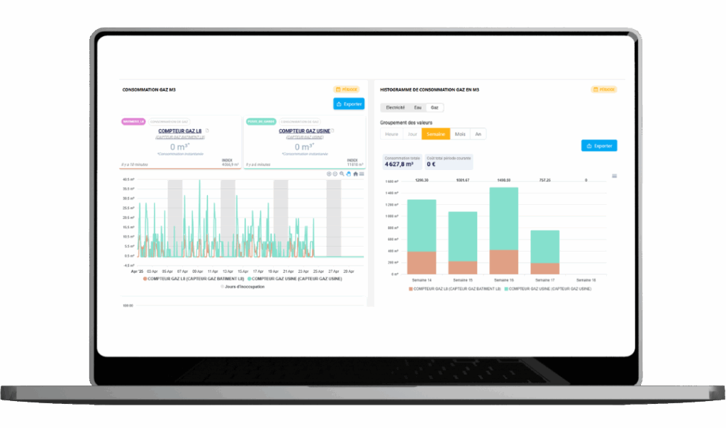 - Suivi énergétique en temps réel (eau, électricité, gaz)