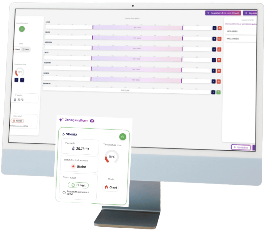 - Optimisation augmentée avec l’intelligence artificielle (pilotage du confort par zone, DJU, maintenance prédictive…)